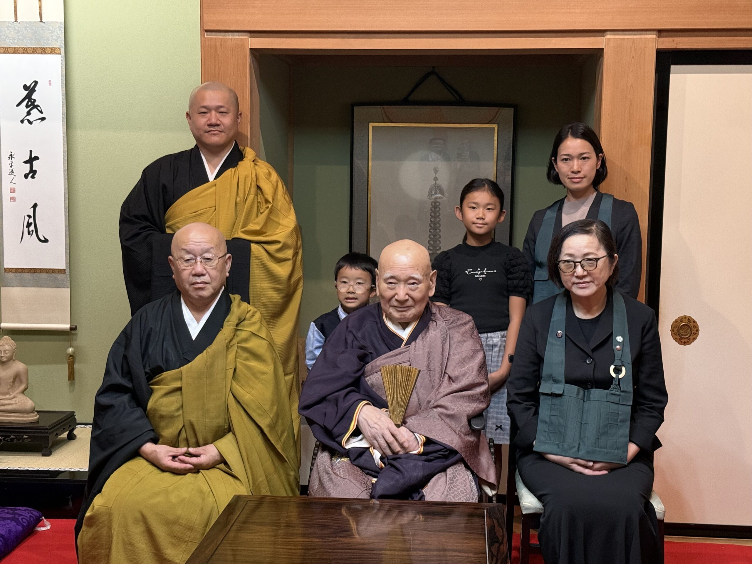 この度、大本山永平寺にて御正忌中に開催された寺族安名親授式に次男の妻が式に参列し、大本山永平寺第八十世黙室玄照禅師 南澤道人不老閣猊下より安名を授かりました。式後には、不老閣猊下に拝問し、御礼の述べさせていただきました。